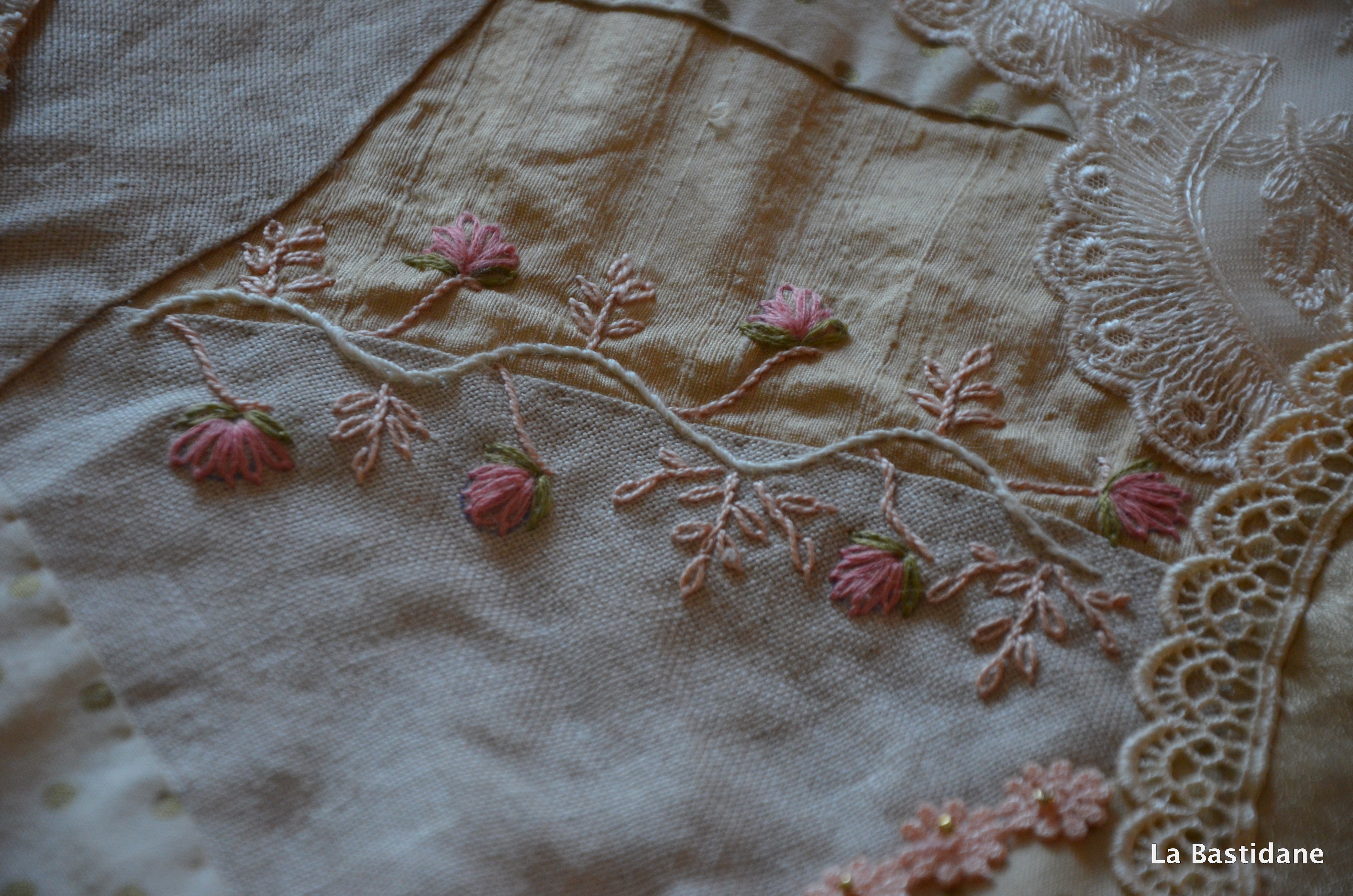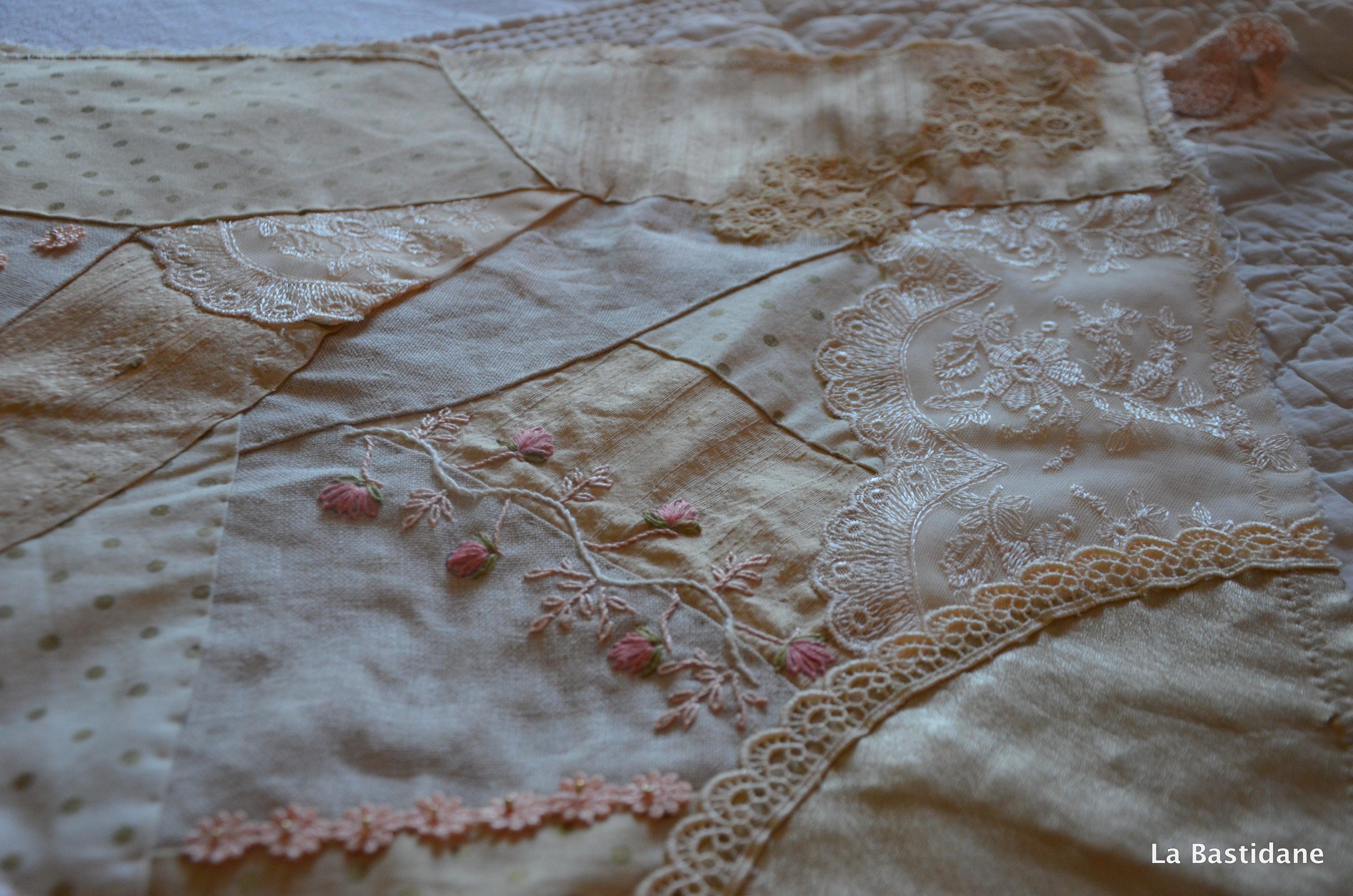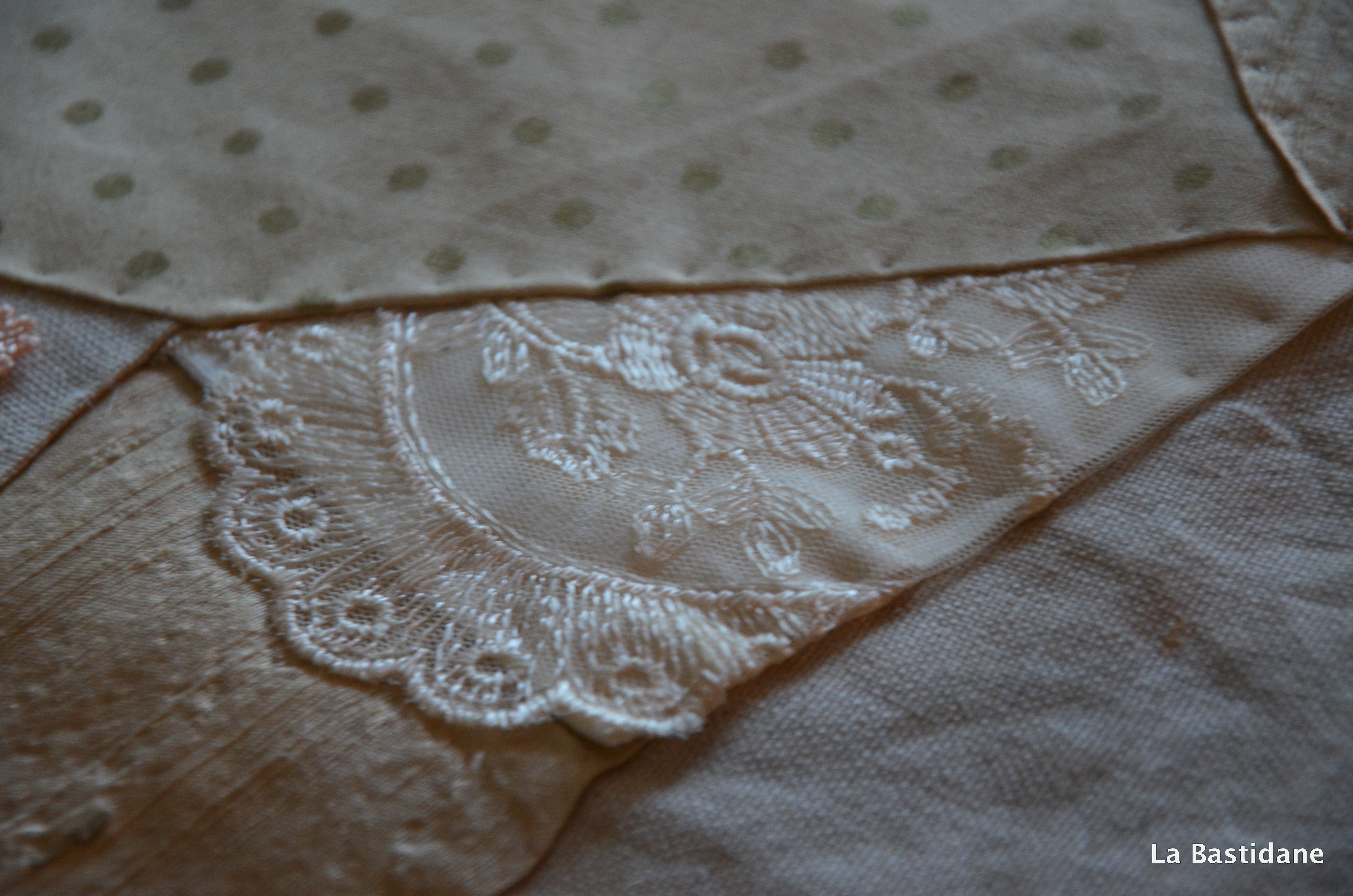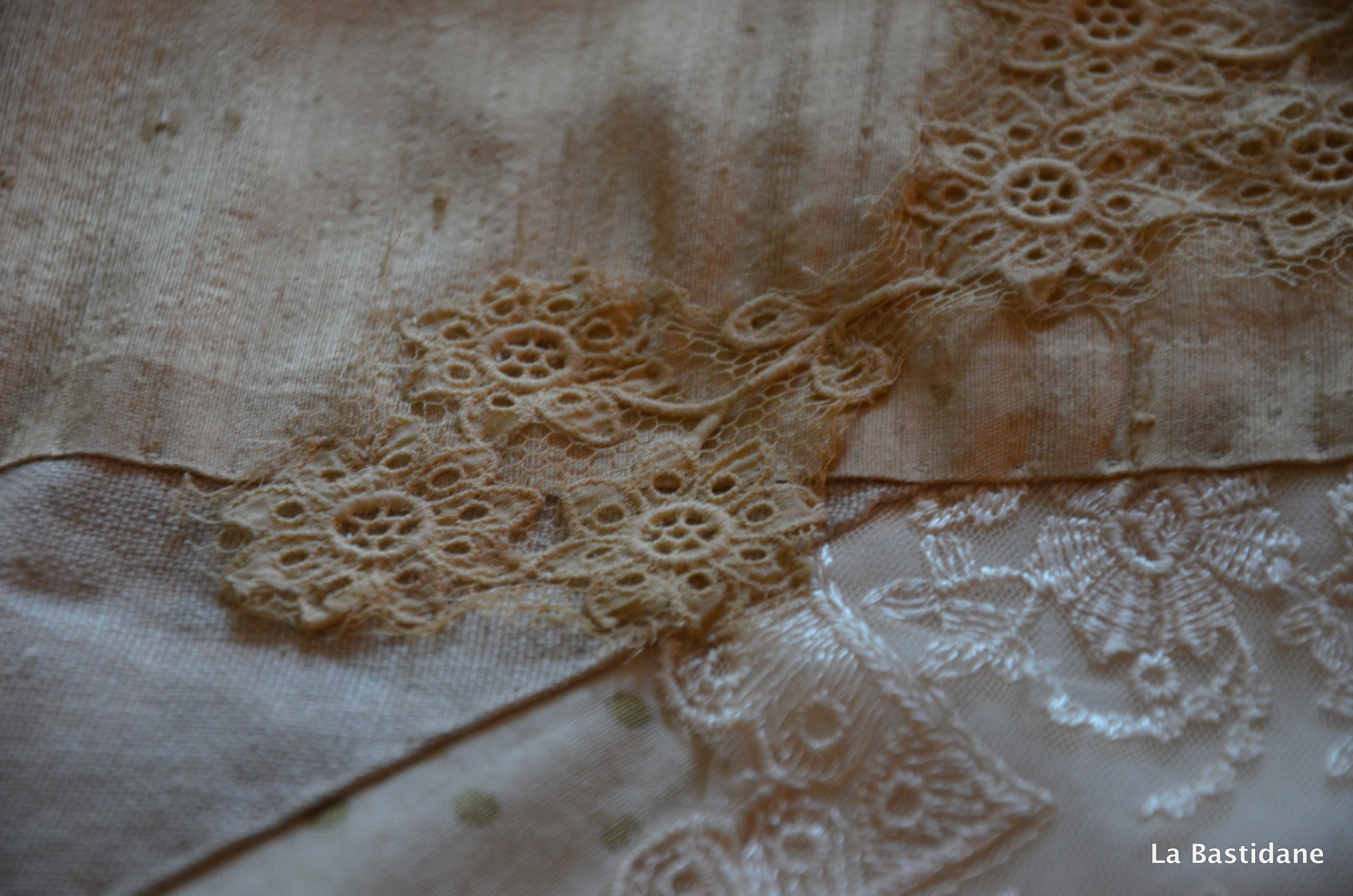 Voici mon top, avec un peu de dentelle pour camoufler quelques tâches sur la soie, le bonheur du crazy quilt c’est qu’on peut utiliser tous ces petits bouts qui trainent dans sa boite à couture.