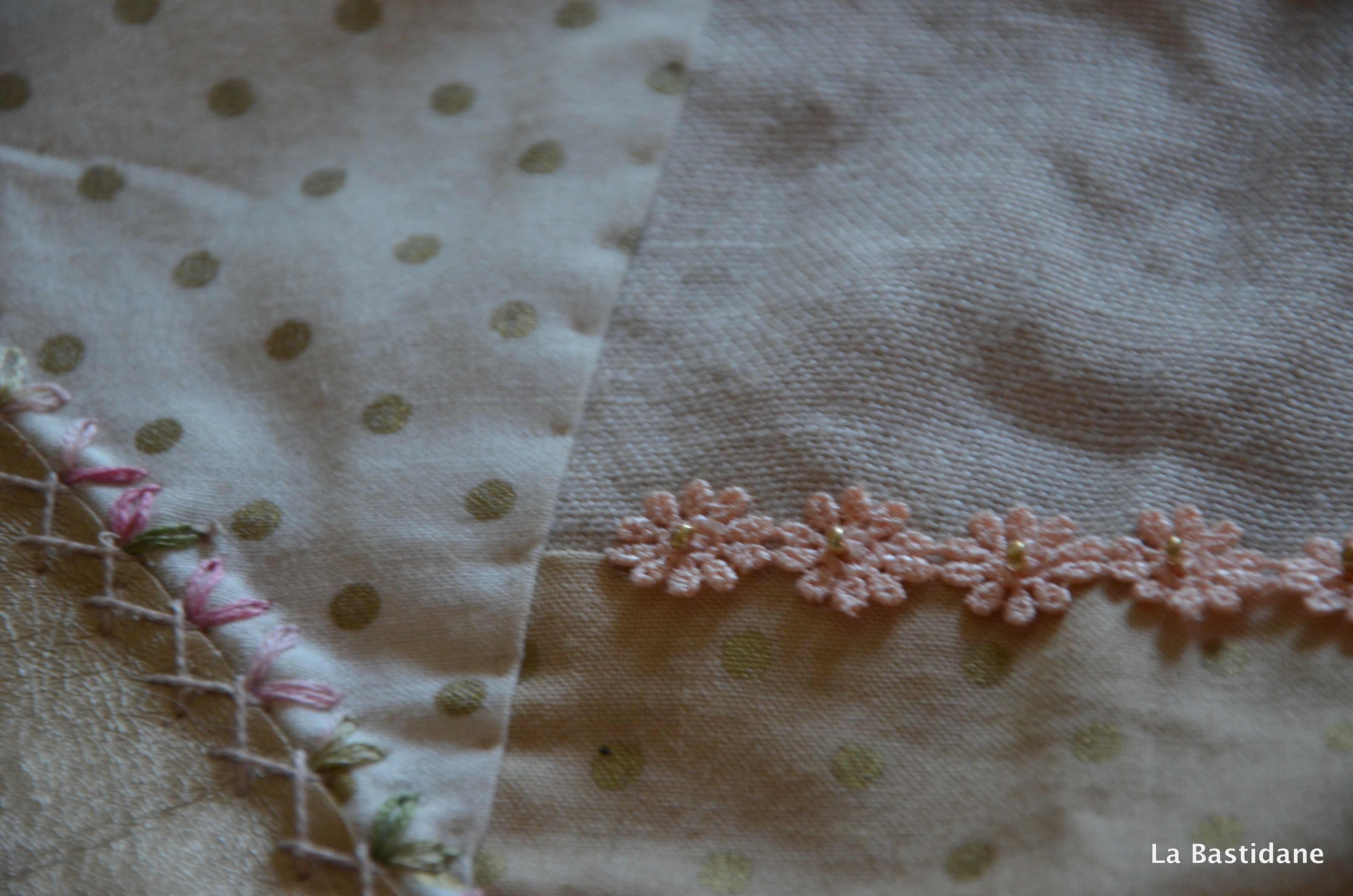 J’ai préparé mon top pour un RR avec le groupe Quilt En France, ça fait un paquet d’années que je suis sur ce groupe internet, et comme je ne sais pas couper droit, j’évite tout genre d’échanges pour du patchwork traditionnel, ce qui m’évite de me faire des ennemi(E)s à vie ;-) Là ce n’est pas pareil, Dany a lancé un RR comme au bon vieux temp, chacune prépare un top, en brode un petit peu, et l’envoie à la suivante sur sa liste … et chacune brode , et laisse son empreinte sur le top de la propriétaire, j’avoue que j’en ai quelqu’uns faient dans les années 2000 et c’est un magnifique souvenir à chaque fois. Ca nous permets de voir comment les autres travaillent, ça donne des idées et surtout ça nous apprends, parce que le patchwork et la broderie sont une école d’humilité, on apprend chaque jour, et à chaque moment, on éduque son regard, et on se perfectionne un peu plus à chaque fois.