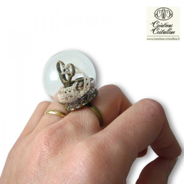 Je vais craquer …. je le sens, il y a quelques mois que les bagues boules de neige, fleurissent chez nos consoeurs américaines, à force de les relucrer j’en ai perdu la vue … et puis enfin j’ai celle que je voulais, celle qui porte haut les couleurs de mes passions, les fils et l’aiguille. …. et c’est chez Cristalline bien sûr …