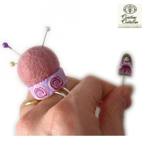 Et puis pour parfaire le tout la bague pique-aiguille adorable, j’en ai déjà une dans mes couleurs beige et blanche … ben oui il faut suivre les 365 petits riens enfin …