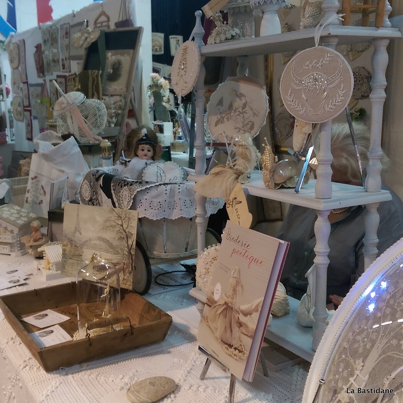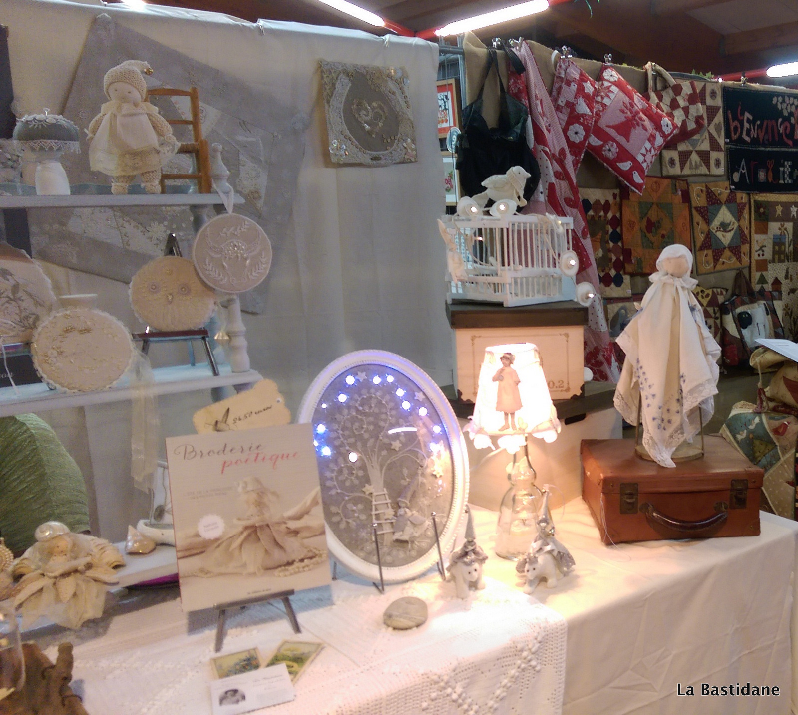 comme quoi, faire de la broderie, classique, au ruban, au point de croix, du patch, piécé, appliqué ou brodé, ….n’est pas réservé qu’aux « vieilles dames », mais aussi à des « jeunes femmes » dynamiques , qui ne se prennent pas au sérieux, et qui offrent aux visiteurs, des merveilles qui font réver, en ces moments quoique l’on en dise, assez tristes et moroses..Merci mesdames pour ces bons moments et merci aussi aux organisateurs, bénévoles, pour ce salon, et tous les bons gâteaux réalisés par ces bénévoles, quel travail !!!!! mais quelle réussite