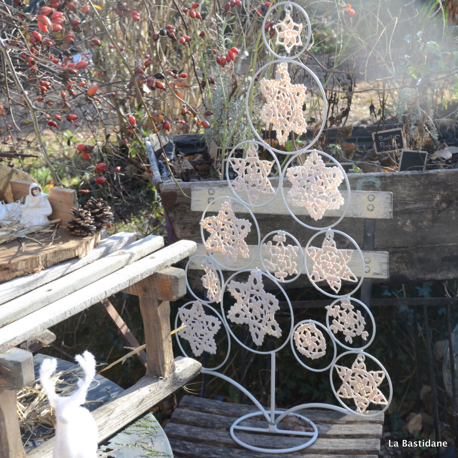 Noël arrive à grands pas, on va fêter la naissance d’un petit enfant qui aurait dû changer le monde, il y a 2000 ans.. les étoiles s’éclaireront peu à peu dans le ciel, le jardin s’éclairera d’une lumière différente, il manquera des étoiles à mon arbre, c’est ainsi que le monde est. Nous avons décoré le jardin.