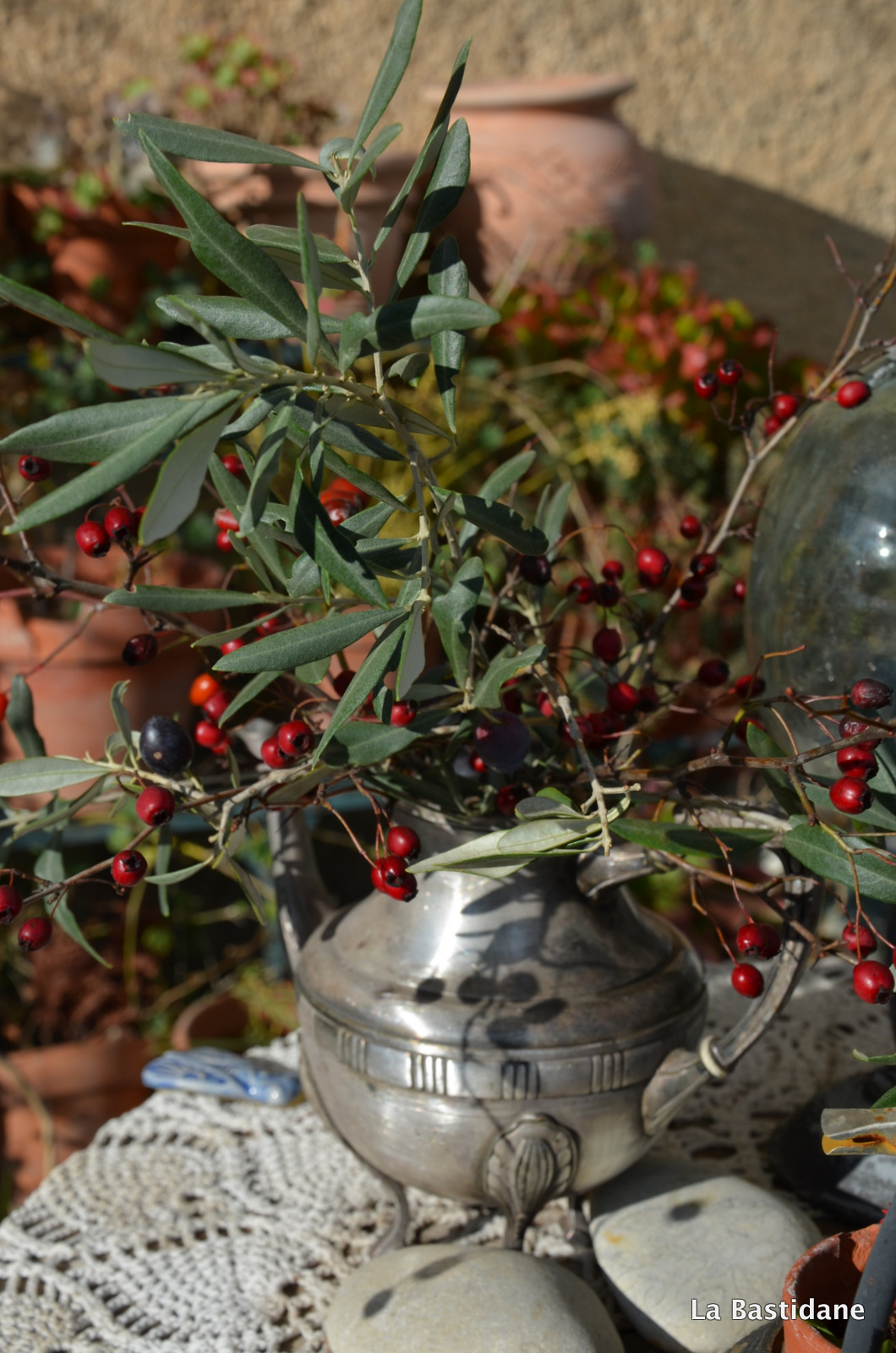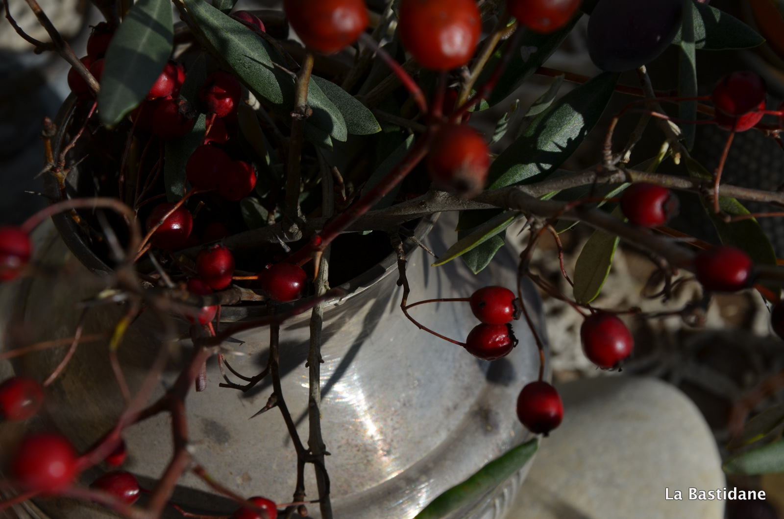 Le Luberon se tient droit et fier, dans la luminosité du matin. Je suis allée chercher un brin de gui, pour refaire le geste ancestral des anciens. Le geste de ceux qui ne croyaient pas en un dieu, mais en une nature souveraine. J’ai ramené quelques brindilles, juste pour ne pas que ça tombe dans l’oubli. J’ai respiré, j’ai réfléchi à tout ce qui fait que le monde est monde, dans son immense cruauté. Et j’ai réfléchi, depuis que l’humain existe, depuis qu’il s’est créé des idoles de paille, les guerres, les atrocités existent, les temps de paix partout dans le monde en même temps n’ont jamais existé. Et c’est à nous, force immobile de changer le destin. C’est dans cette force qui habitent les simples, les sans grade, les tout-petits, c’est dans cet espoir de sérénité que trouverons une révolution. Peu à peu, siècles après siècles, il y aura des sages pour respirer l’aube du premier jour. Et si chaque année, à chaque instant, un seul humain aspirera à celà, c’est que la victoire sera en marche, elle mettra du temps à venir, mais elle viendra. Parce que rien ne pourra l’empêcher.