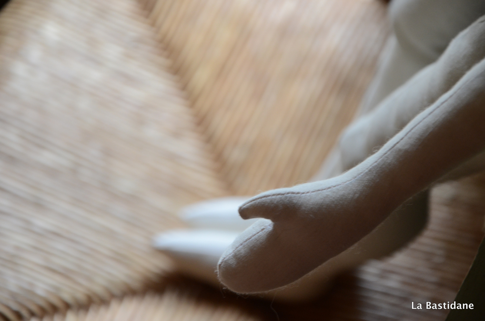 C’est difficile de faire entrer la lumière dans un regard de poupée, que c’est difficile, le résultat n’est pas à la hauteur de mes aspirations, mais elle est née grâce à son regard, d’habitude je fabrique entièrement la poupée, vêtements, perruque et je fais son visage en dernier