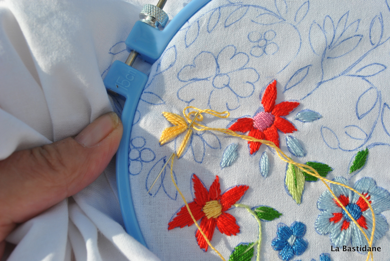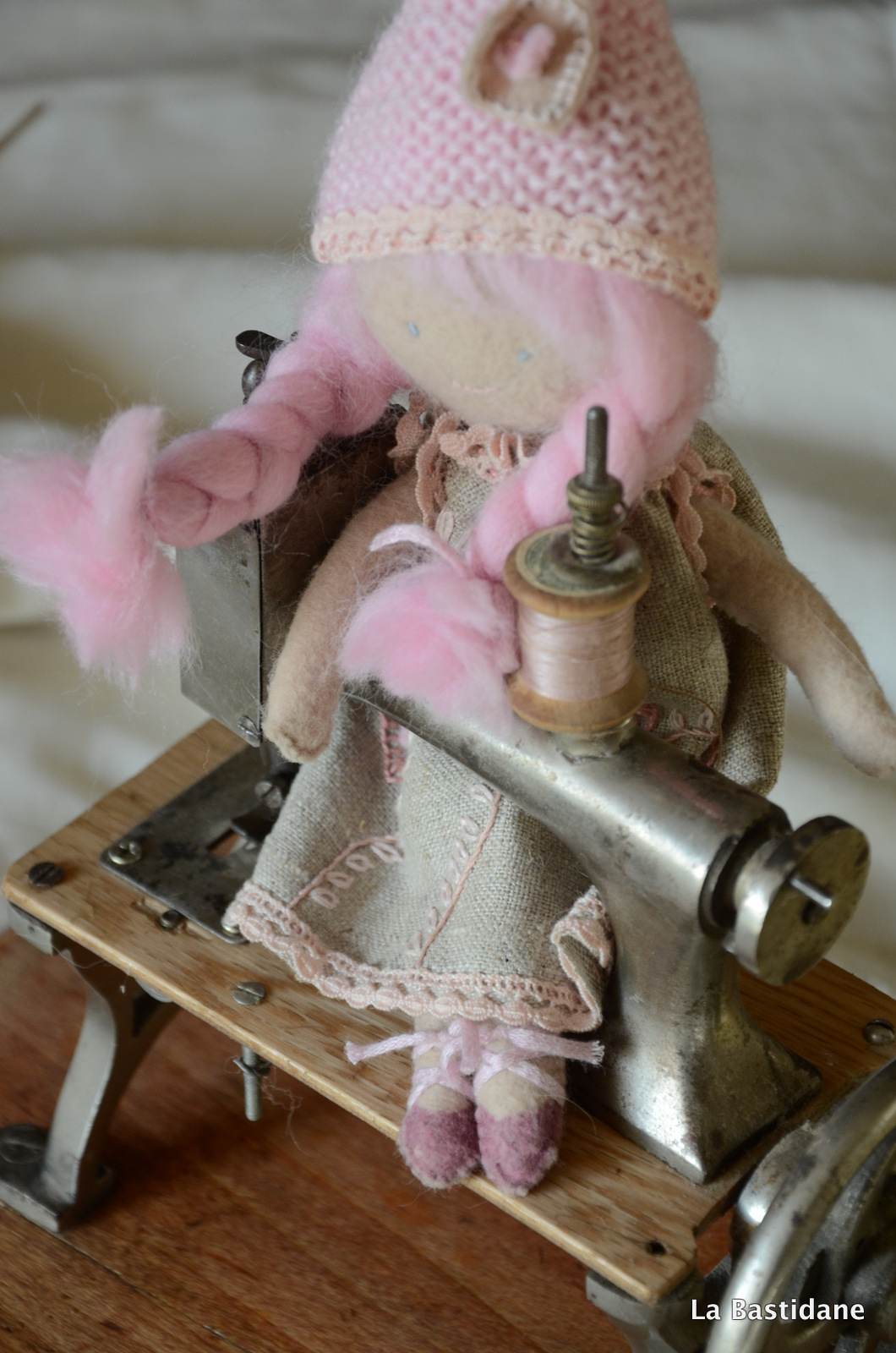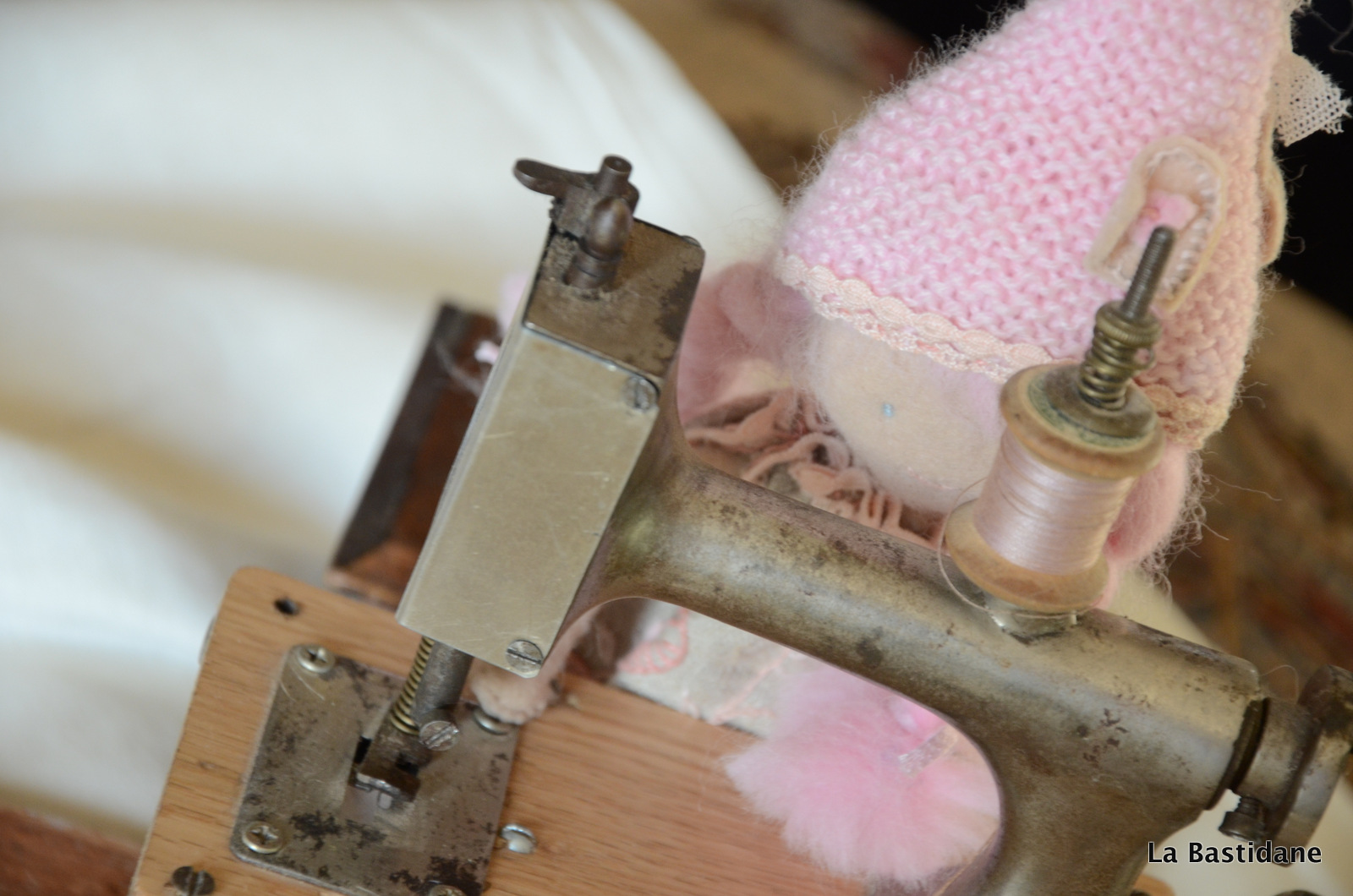 C’est qu’elle s’impatiente déjà à poste sur la machine à coudre, elle rêve de ce qu’il sera, aura t’il une belle chevelure bleue, ou verte, ou mauve, sera t’il habillé d’une belle chemise brodée, et d’un pantalon de velours ?… que nenni Milady, personne ne le sait, c’est au fur et à mesure, qu’il va apparaitre sous les aiguilles, nous aurons tous la surprise ….