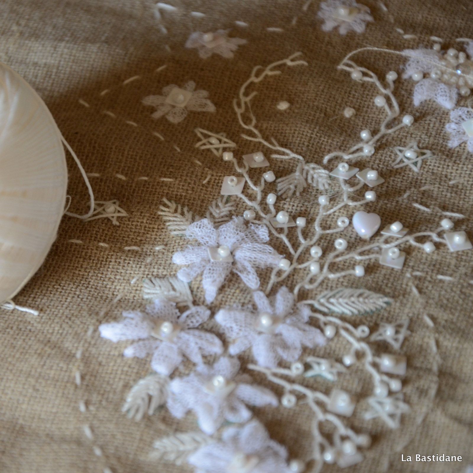 Les dessins d’esquisse à effacer, quelques perles à broder, et le dos à terminer …