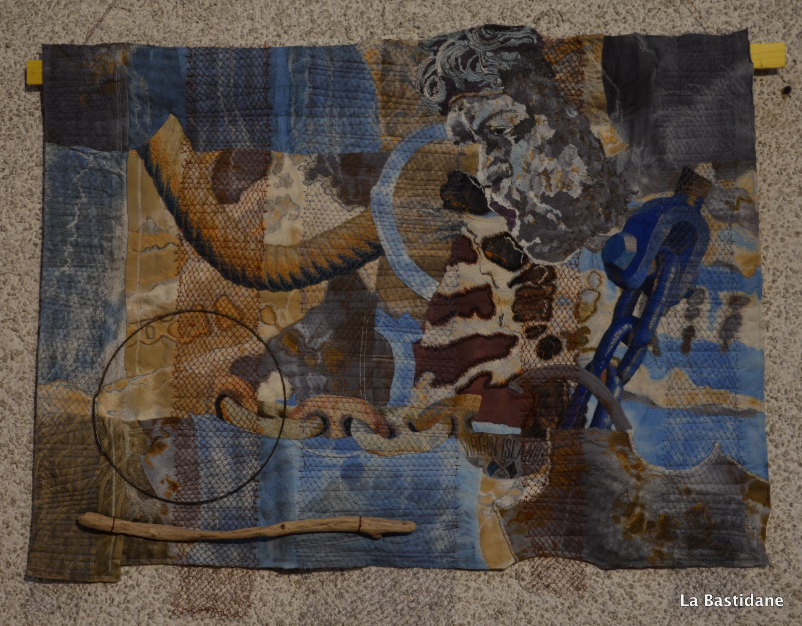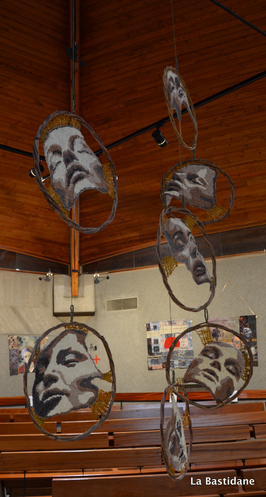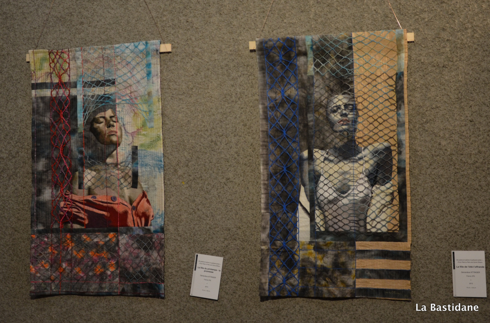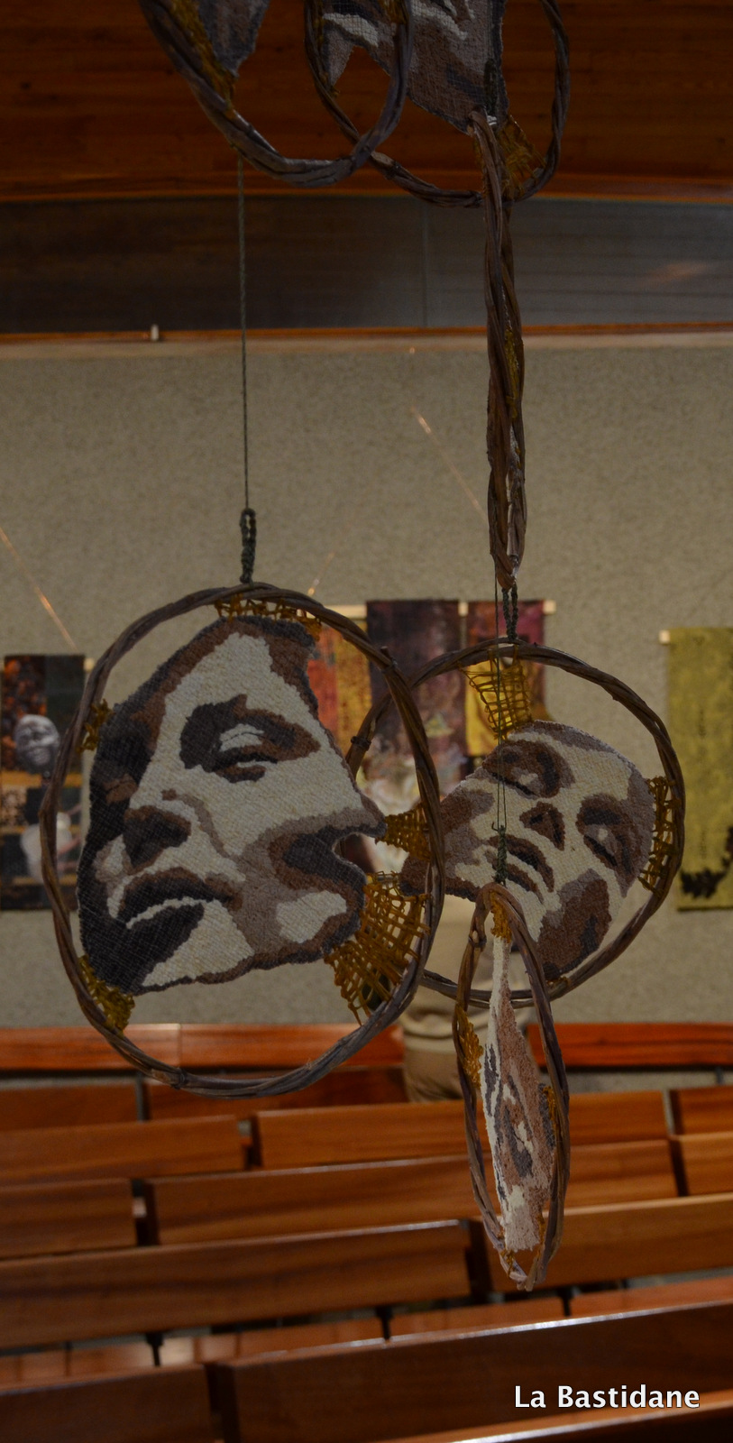 Ballade au coeur de la nature, la lumière était vilaine, l’église assombrie à cause du mauvais temps, malgré les nombreux spots, mais je vous invite à découvrir Catherine Tourel, dans ses nouvelles créations, éloignées du patchwork traditionnel, elle met un pied dans l’art textile, ou plutôt ses mains, et ce n’est pas pour déplaire, bien au contraire.