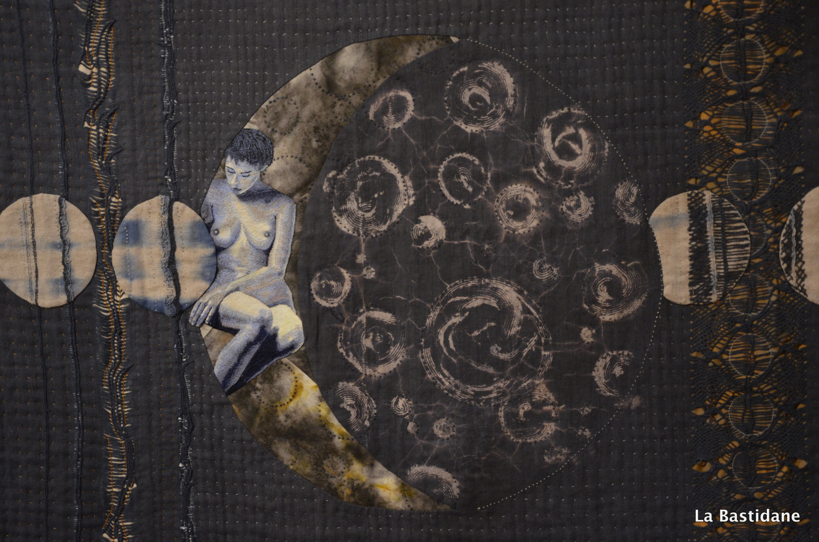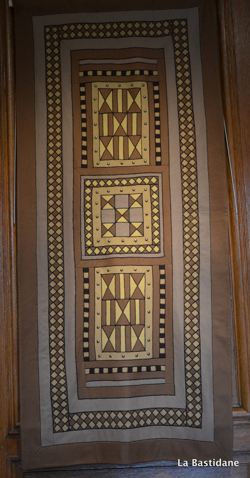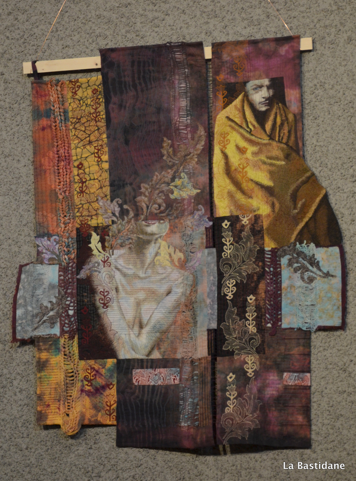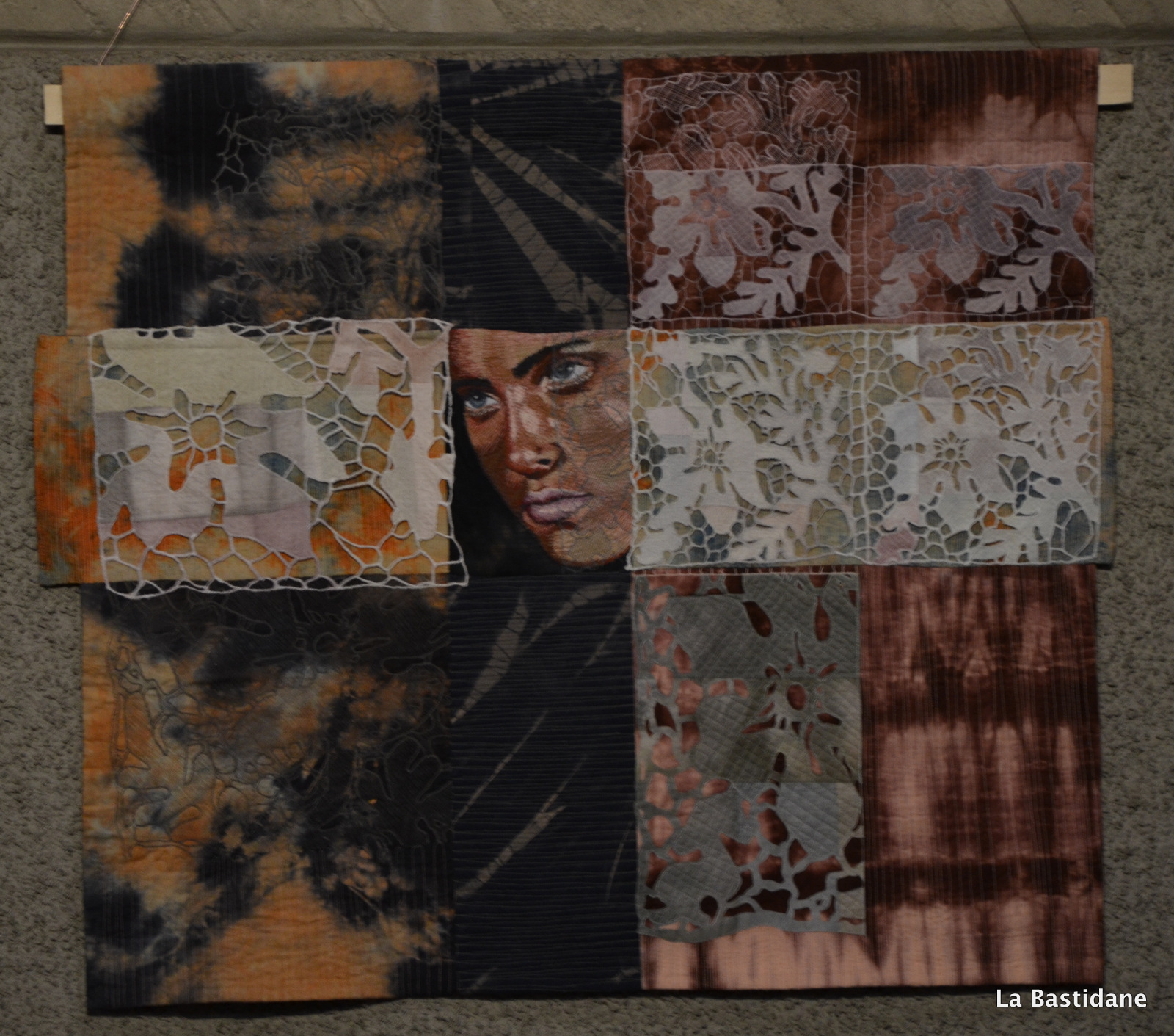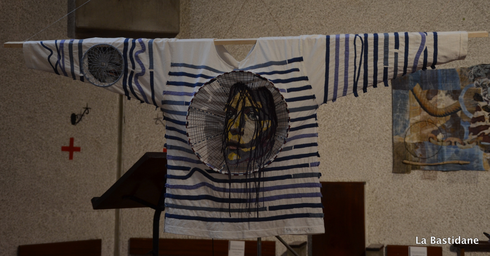 Ballade au coeur de la nature, la lumière était vilaine, l’église assombrie à cause du mauvais temps, malgré les nombreux spots, mais je vous invite à découvrir Catherine Tourel, dans ses nouvelles créations, éloignées du patchwork traditionnel, elle met un pied dans l’art textile, ou plutôt ses mains, et ce n’est pas pour déplaire, bien au contraire.
