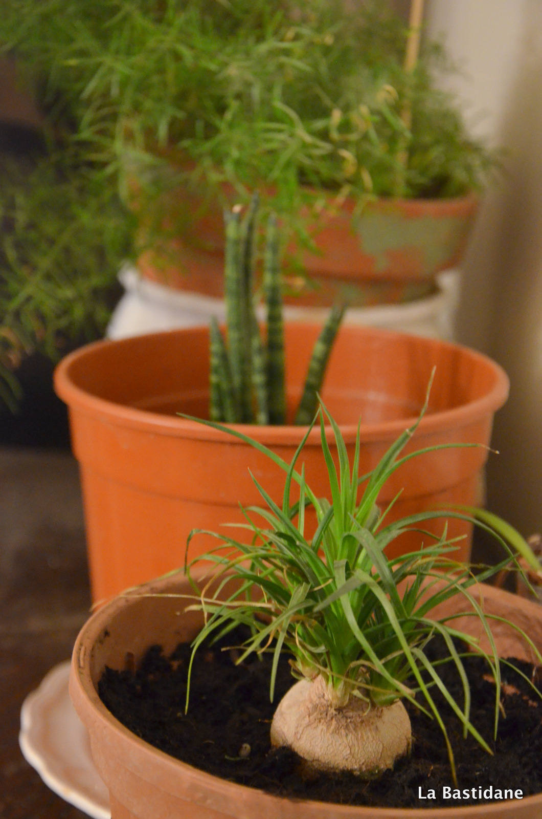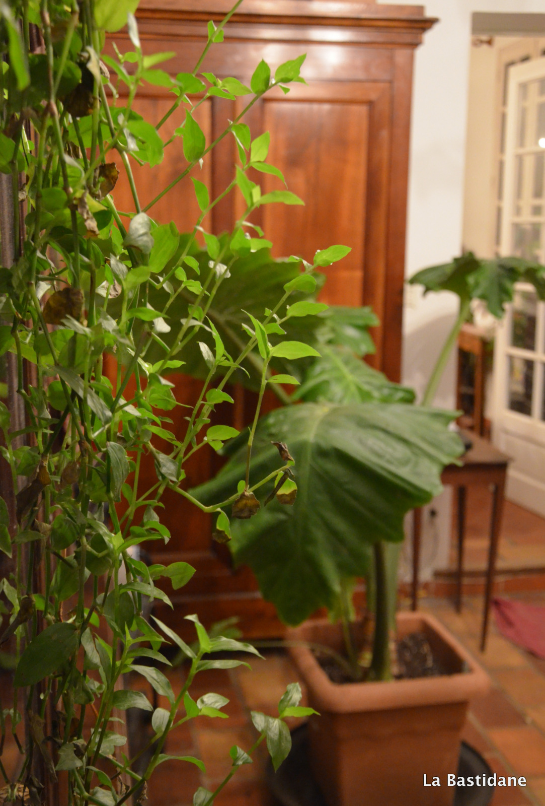 Chez elle, ça foisonne, des plantes de toutes sortes, j’en rajoute aussi un peu, au cas où elle n’en aurait pas assez, l’été elles sortent sur la terrasse et l’hiver elles entrent pour passer l’hiver au chaud, on est un peu envahi mais qu’importe elles sont partout, elles s’installent partout, dans la salle de bain, sur le piano, dans la cuisine, au dessus des buffets, sur le réfrigérateur, sur les bahuts, sur les bureaux, dans la bibliothèque … Les plantes, c’est une passion qui se transmet de mère en fille, les rempoter, les soigner, leur parler, et mettre les mains dans la terre. Certaines ont été sauvées de justesse, d’un propriétaire irrespectueux, s’en débarrassant sans vergogne, certaines ont vécu des moments difficiles par manque de soin et de patience, elles se requinquent chez nous, il y a la nursery, et la clinique, personne ne s’avoue vaincu, tant qu’un brin de chlorophylle persiste parce que sans plante, la vie serait bien triste. Elles sont la vie, elles sont l’oxygène, elles sont le vecteur des voyageurs immobiles, de l’Asie, aux rives du Jourdain, des Iles du Pacifique, en passant par l’Afrique, elles naissent, prospèrent et s’acclimatent dans notre petit coin à nous. Elles sont nos soeurs, nos amies, et chacune raconte une histoire à qui sait les écouter.