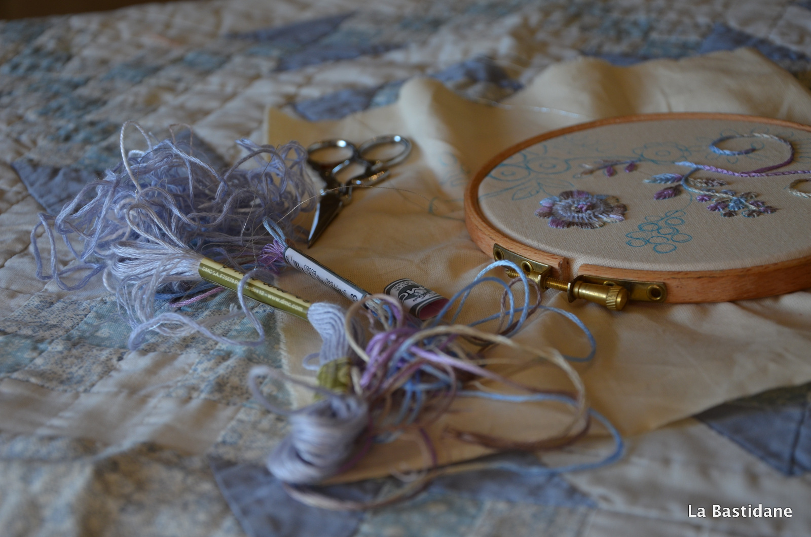 et puis je regarde à la lumière du jour, mon travail de la veille …. parce que la nuit les couleurs sont irréelles, et parce qu’un jardin sans oiseau, c’est un jardin bien triste …