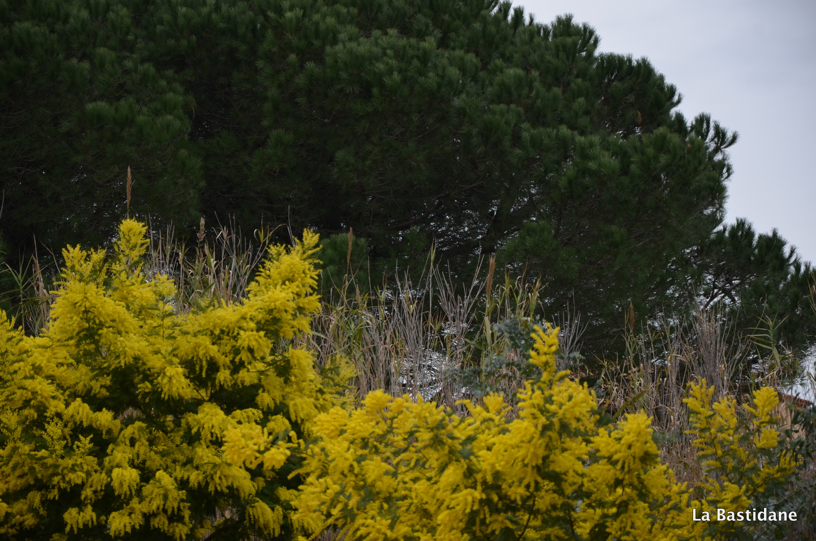 Faire un aller retour impromptu et rapide, confirmation, ils sont en fleurs, comme toujours, ne pas avoir le temps de s’arrêter, ne pas avoir le temps de prendre des photos, ne pas prendre le temps d’aller voir la plage .. juste engranger rapidement des images douces dans le ciel gris. Assise dans la voiture, sentir l’odeur sublime des mimosas. Un jour je prendrai le temps.